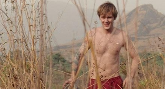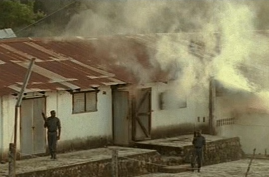 머리를 깎고, 상의를 벗은 채, 그는 미친 듯이 총을 들어 정부군의 검문소를 향해 달려간다.