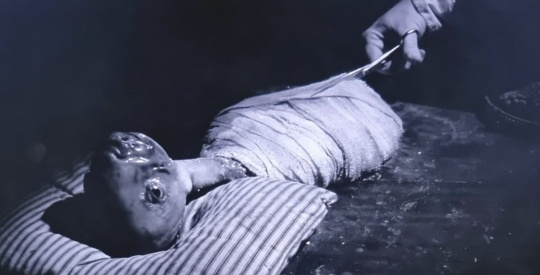 붕대 속에서는 마치 생명체의 내장이 드러나는 것처럼 끈적거리는 살덩이가 보인다.