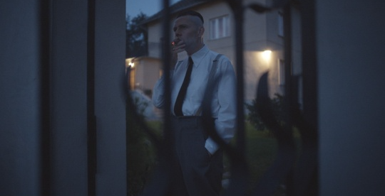 아침을 마치고 회스는 제복 상의를 걸친 뒤 바깥으로 걸어 나간다. 그의 발걸음과 동시에 카메라는 경계선 하나를 넘는다.