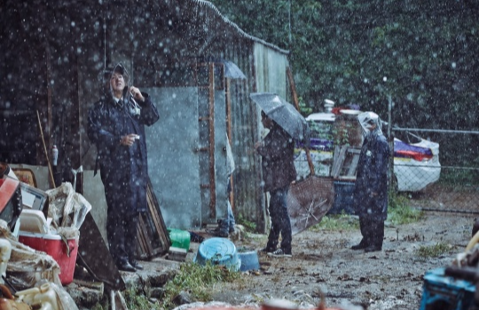 종구는 이 외지인(쿠니무라 준)에 대해 의심을 품기 시작하고, 동료 경찰과 함께 그의 집을 찾아가지만, 증거는 나오지 않습니다. 그러나 그의 집 내부엔 알 수 없는 의식을 치른 흔적들과 정체불명의 사진들, 제물로 쓰인 듯한 물건들이 널려 있습니다. 그 속에는 종구의 딸 효진의 신발도 발견되죠.