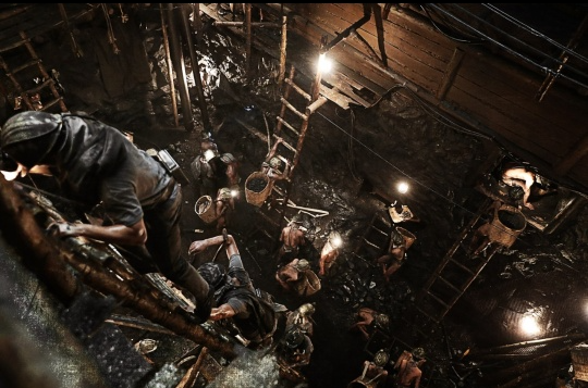 그 위엔 검은 먼지에 범벅된 사내들, 그들은 조선에서 끌려온 강제징용 노동자들이다.
